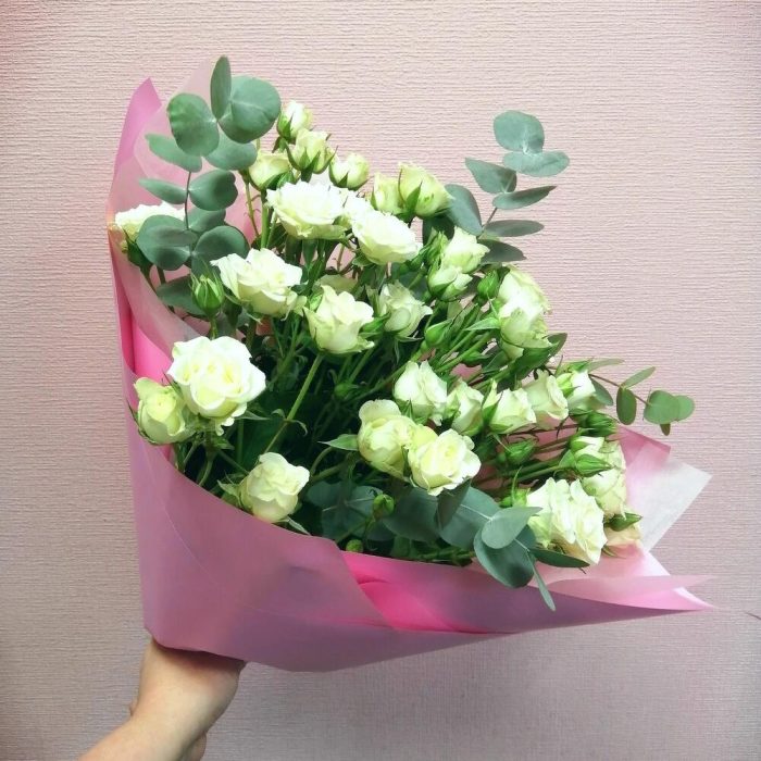 Роза кустовая – 7 шт.Эвкалипт – 3 шт.Упаковка – 1 шт.