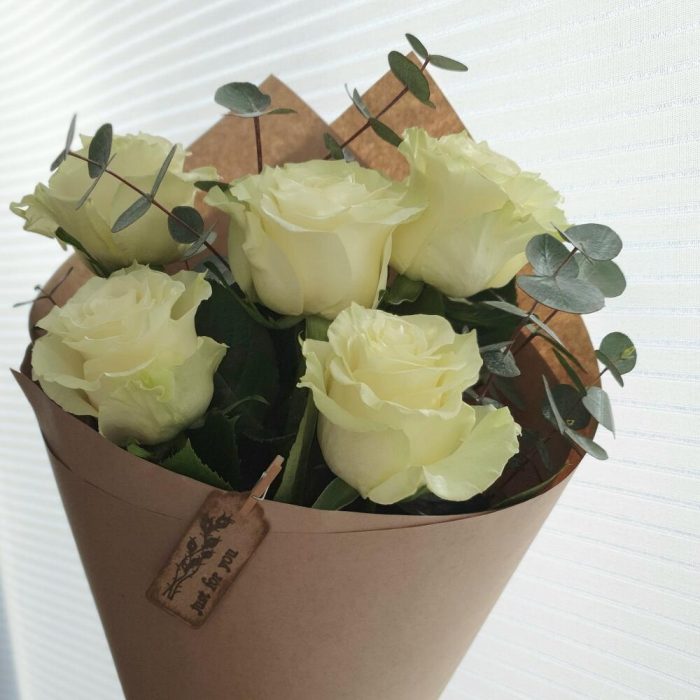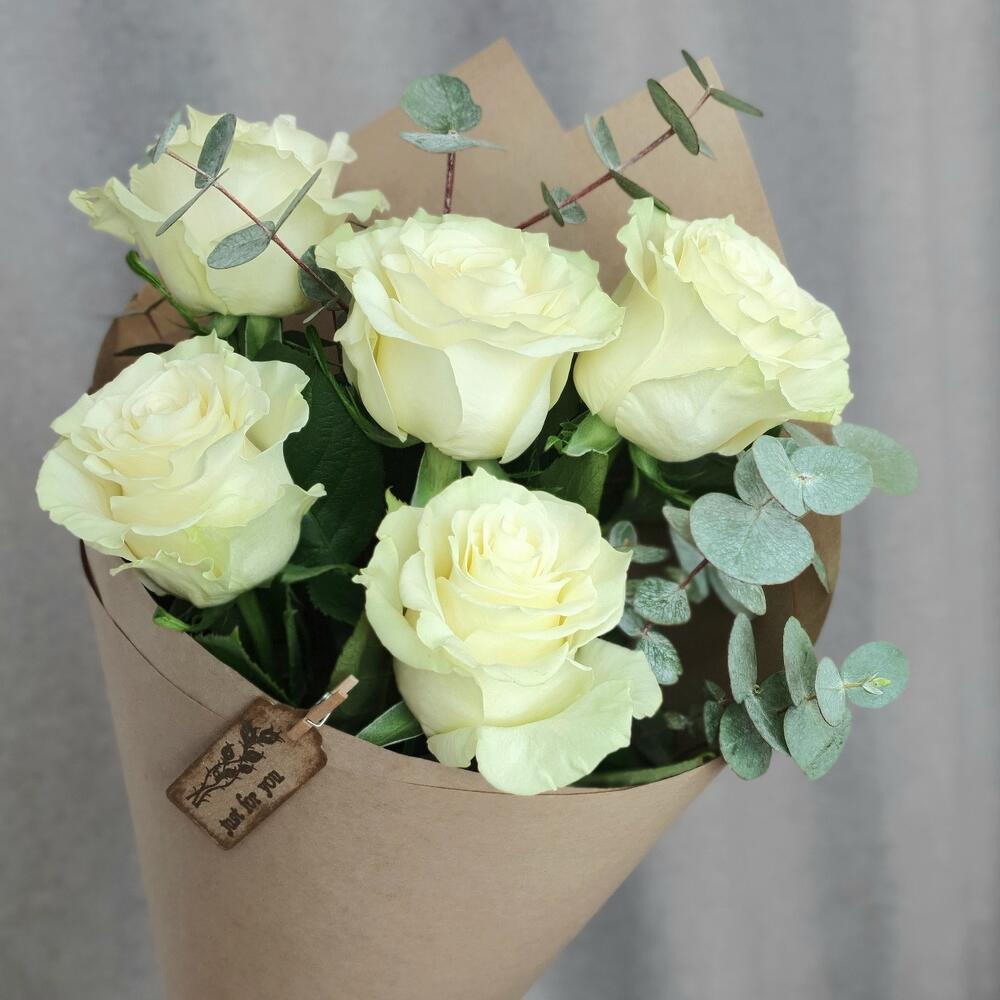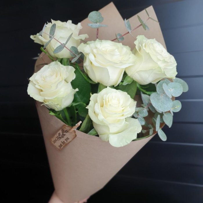Эвкалипт – 2 шт.Роза – 5 шт.Крафт упаковка – 1 шт.