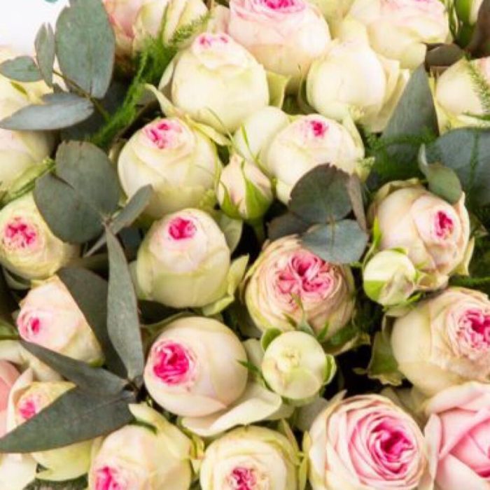 Кустовая роза – 10 шт. Эвкалипт – 2 шт.