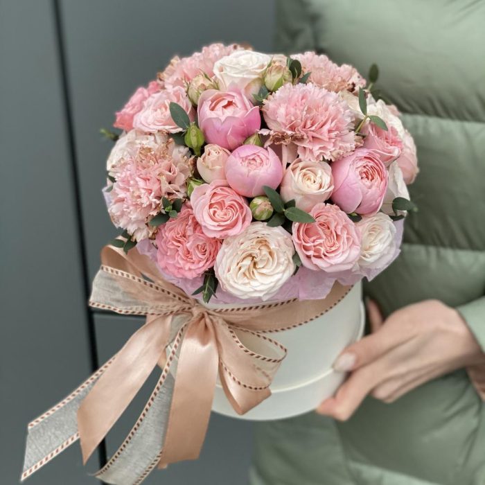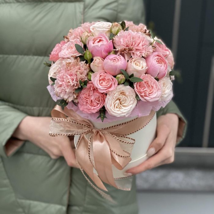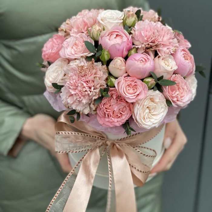 “В твоих глазах”: нежная шляпная коробка с французскими розами